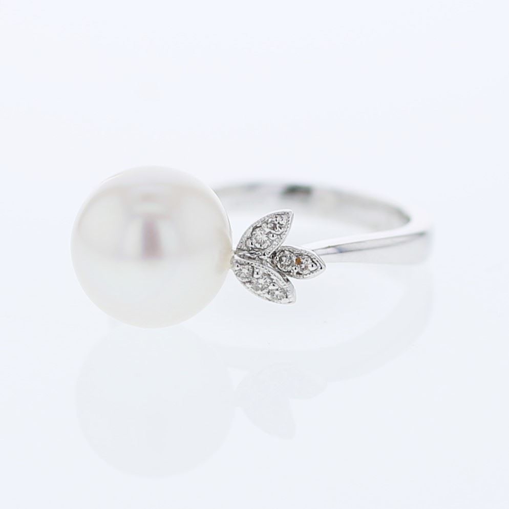 REF-66Y6N ---- Natural 11.32 CTW Pearl & Diamond Ring 18K White Gold