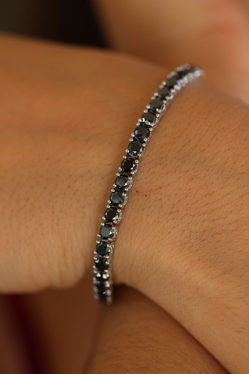 REF-286H4M - SKU: BR80003 ---- Natural 11.88 ctw Black Diamond Eternity Tennis Bracelet 14K White Gold