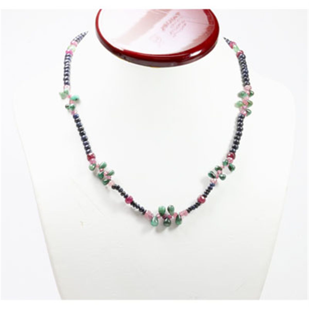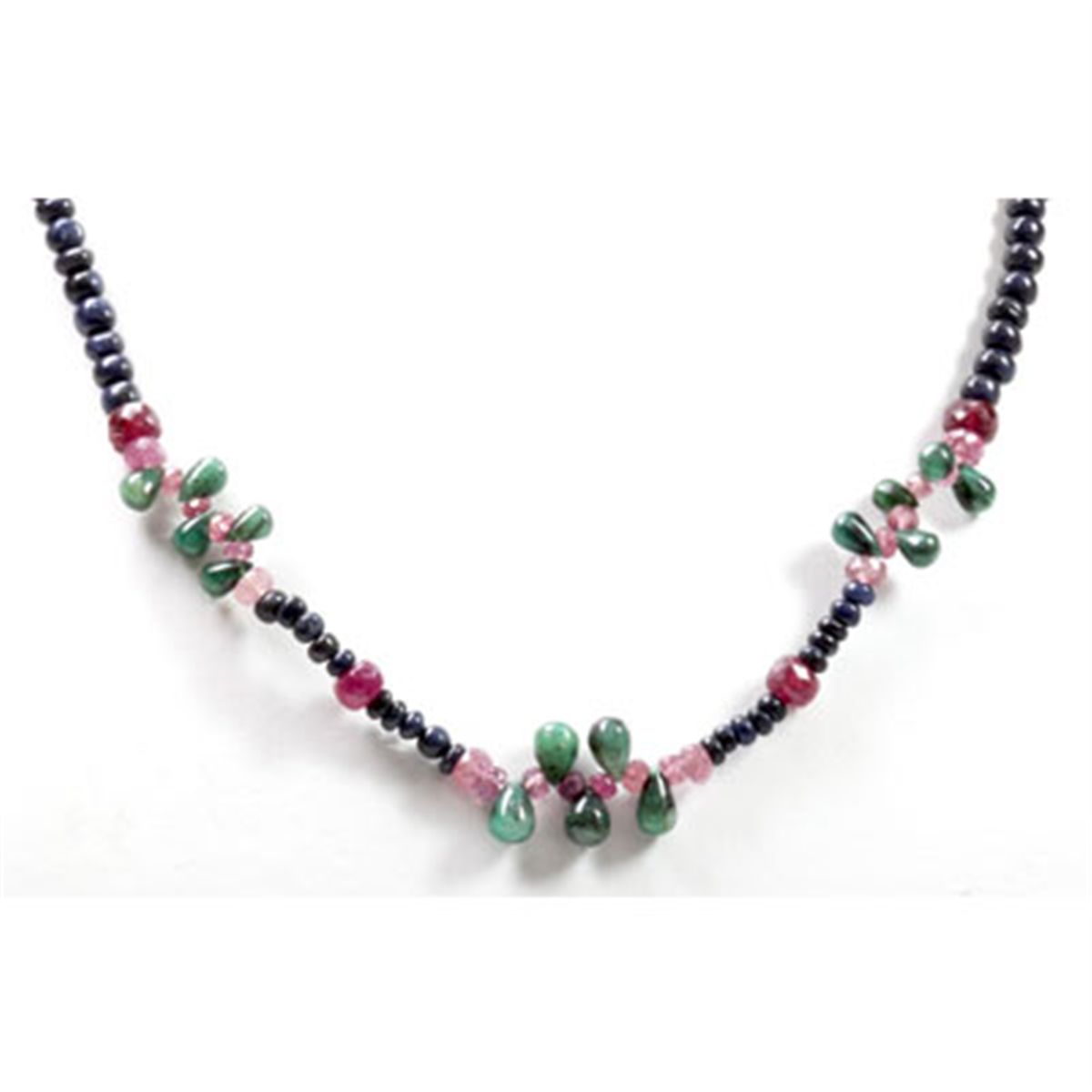 Natural 112.04 ctw Emerald, Ruby & Sapphire Bead Necklace ; MSRP: $1025