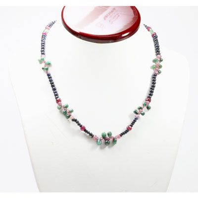 Natural 112.04 ctw Emerald Ruby Sapphire Bead Necklace **|**|** Natural 112.04 ctw Emerald, Ruby & Sapphire Bead Necklace ; MSRP: $1025