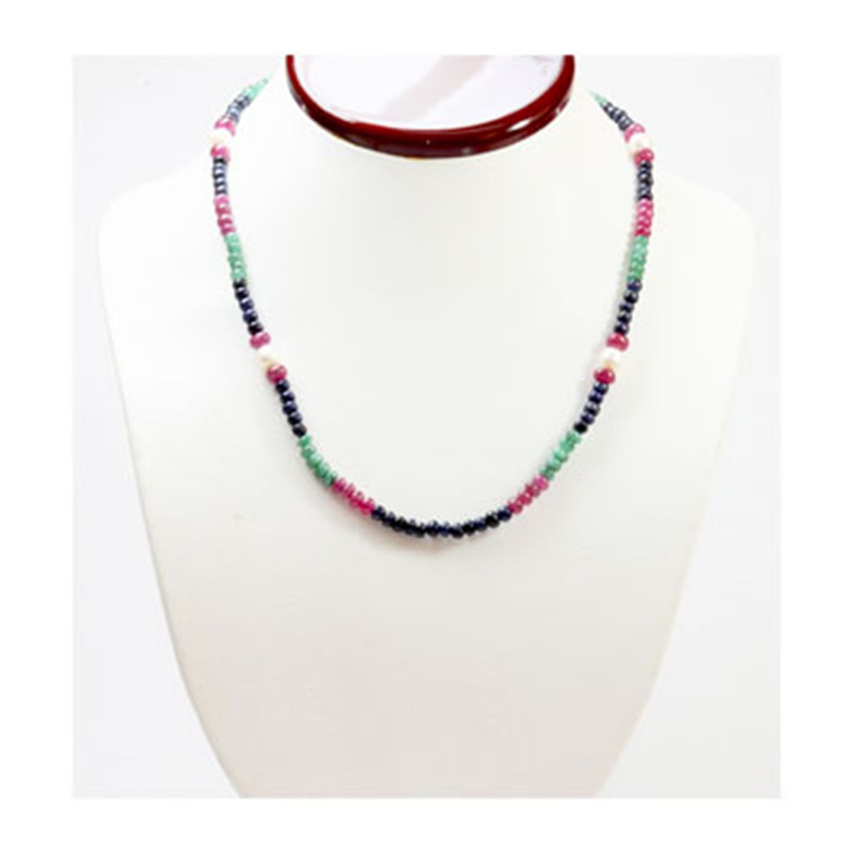 Natural 112.69 ctw Emerald, Ruby & Sapphire Bead Necklace ; MSRP: $1031