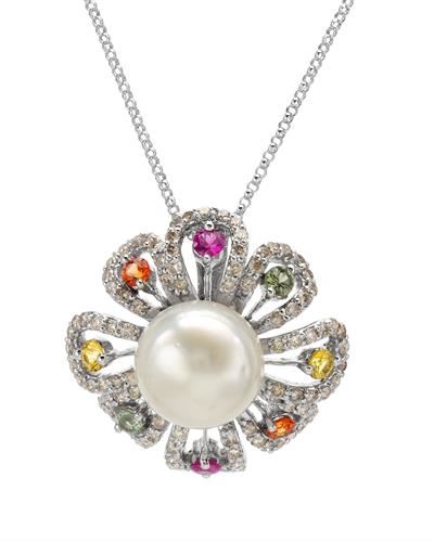 REF-131R4K ---- Natural 12.30 CTW Pearl & Diamond Necklace 14K White Gold
