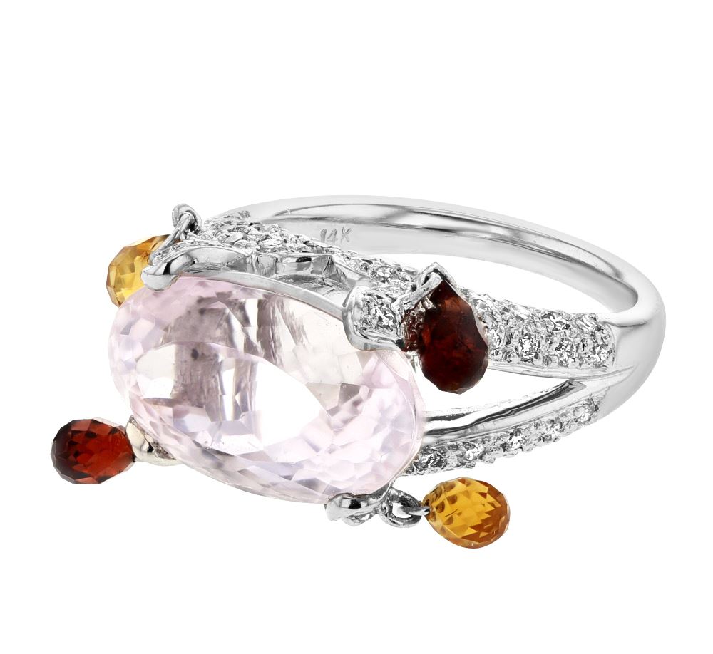 REF-102K6R ---- Natural 12.86 CTW Kunzite & Garnette Ring 14K White Gold