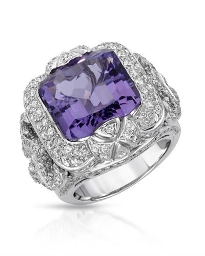 REF-354H6W ---- Natural 12.87 CTW Amethyst & Diamond Ring 18K White Gold