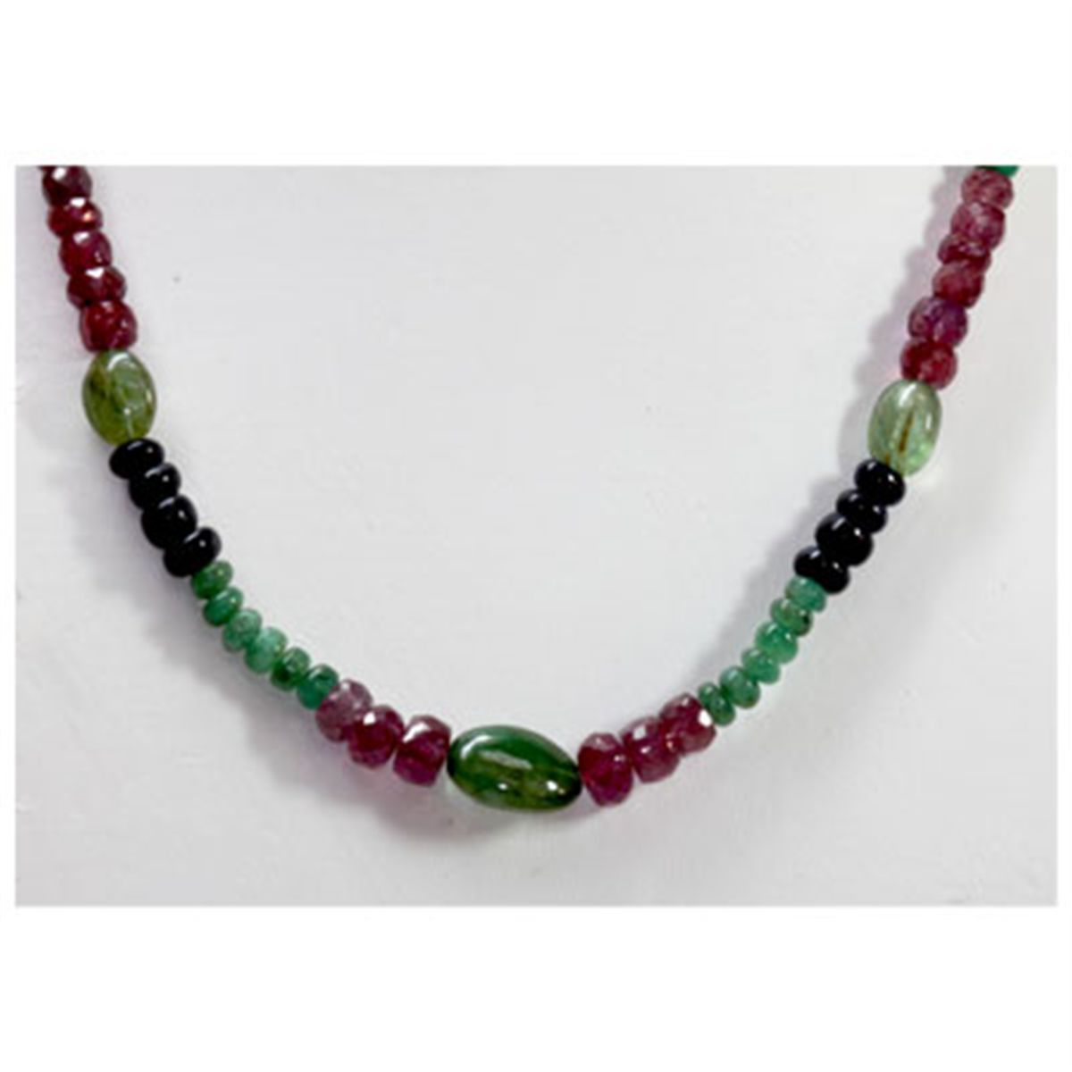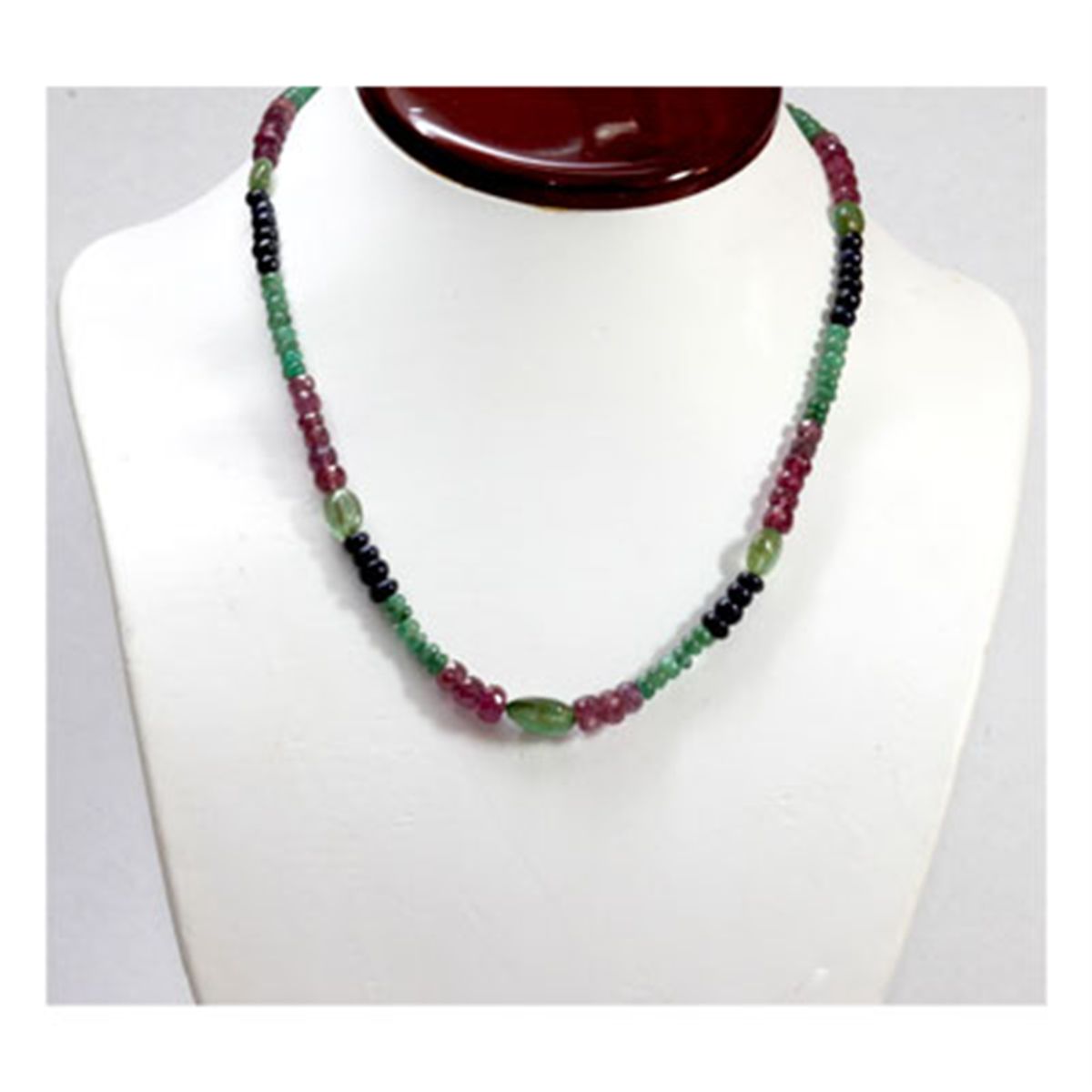Natural 120.85 ctw Emerald, Ruby & Sapphire Bead Necklace ; MSRP: $1099