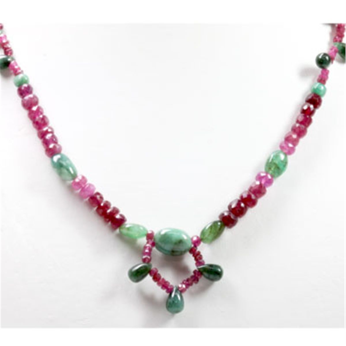 Natural 124.03 ctw Ruby & Emerald Bead Necklace ; MSRP: $1126