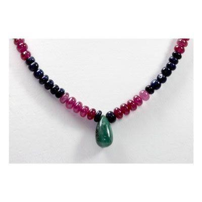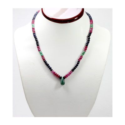 Natural 128.39 ctw Emerald Ruby Sapphire Bead Necklace **|**|** Natural 128.39 ctw Emerald, Ruby & Sapphire Bead Necklace ; MSRP: $1162