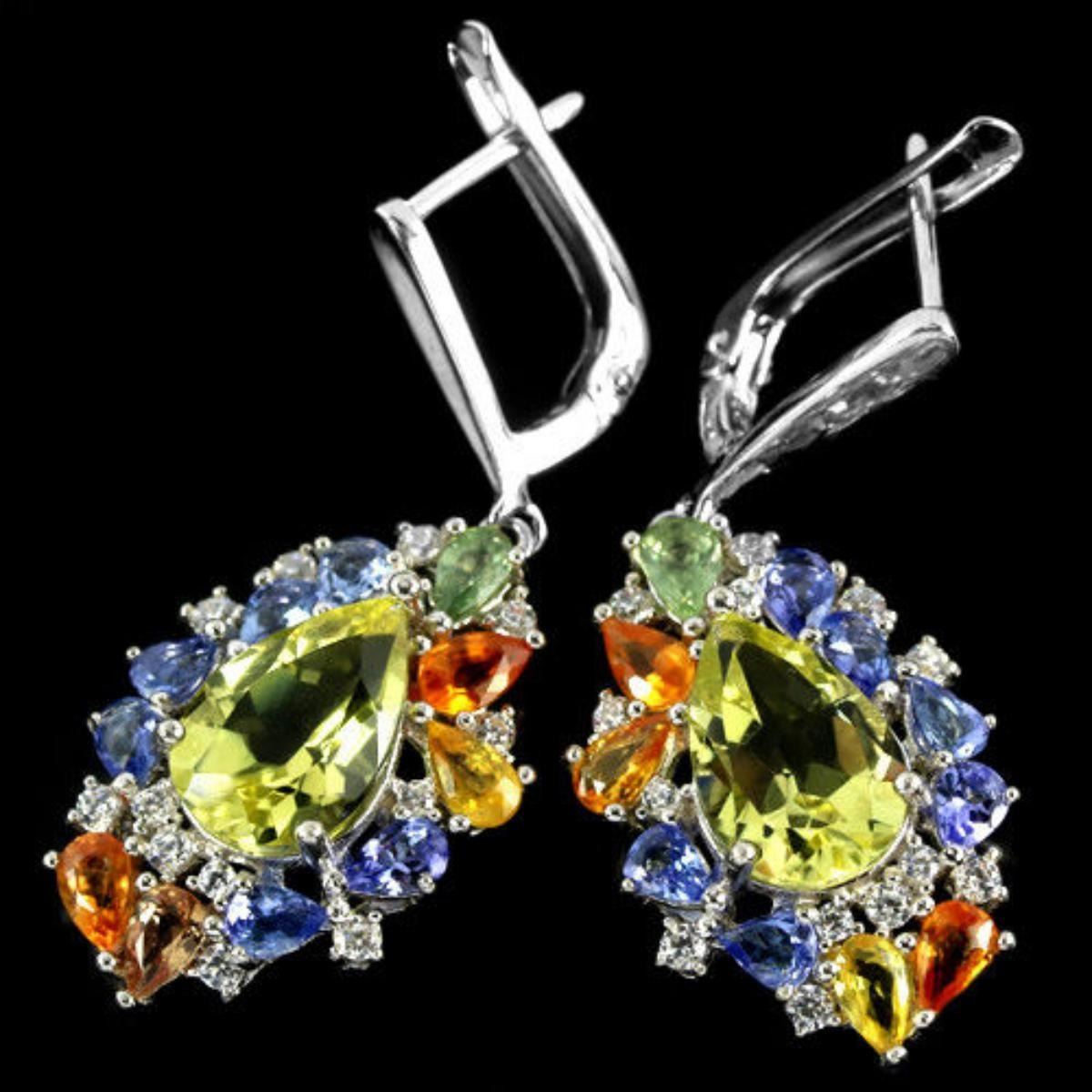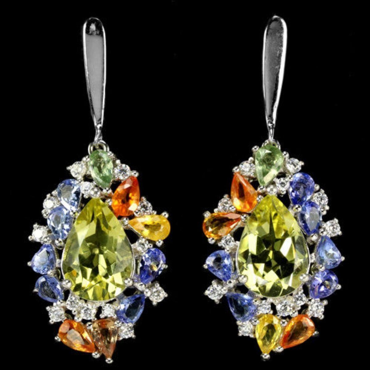 GENUINE QUARTZ TANZANITE SAPPHIRE & CZ 925 SILVER EARRING 14K WHITE GOLD COATING; STONE SHAPEPEARSTONE DIMENSION12 X 8 MM. , 5 X 3 MM. , 4 X 3 MM.ITEM WEIGHT8.9 GRAMCOLORMULTI COLORCLARITYVVS VS TO SILUSTERMESMERIZINGTREATMENTNATURAL UNHEATED & HEATEDORIGIN OF STONEBRAZIL, TANZANIA & AFRICAHARDNESS7 - 9;FACE OF EARRING 41 X 16 MM. WHITE CUBIC ZIRCONIA 1.7 MM. , 1.5 MM.