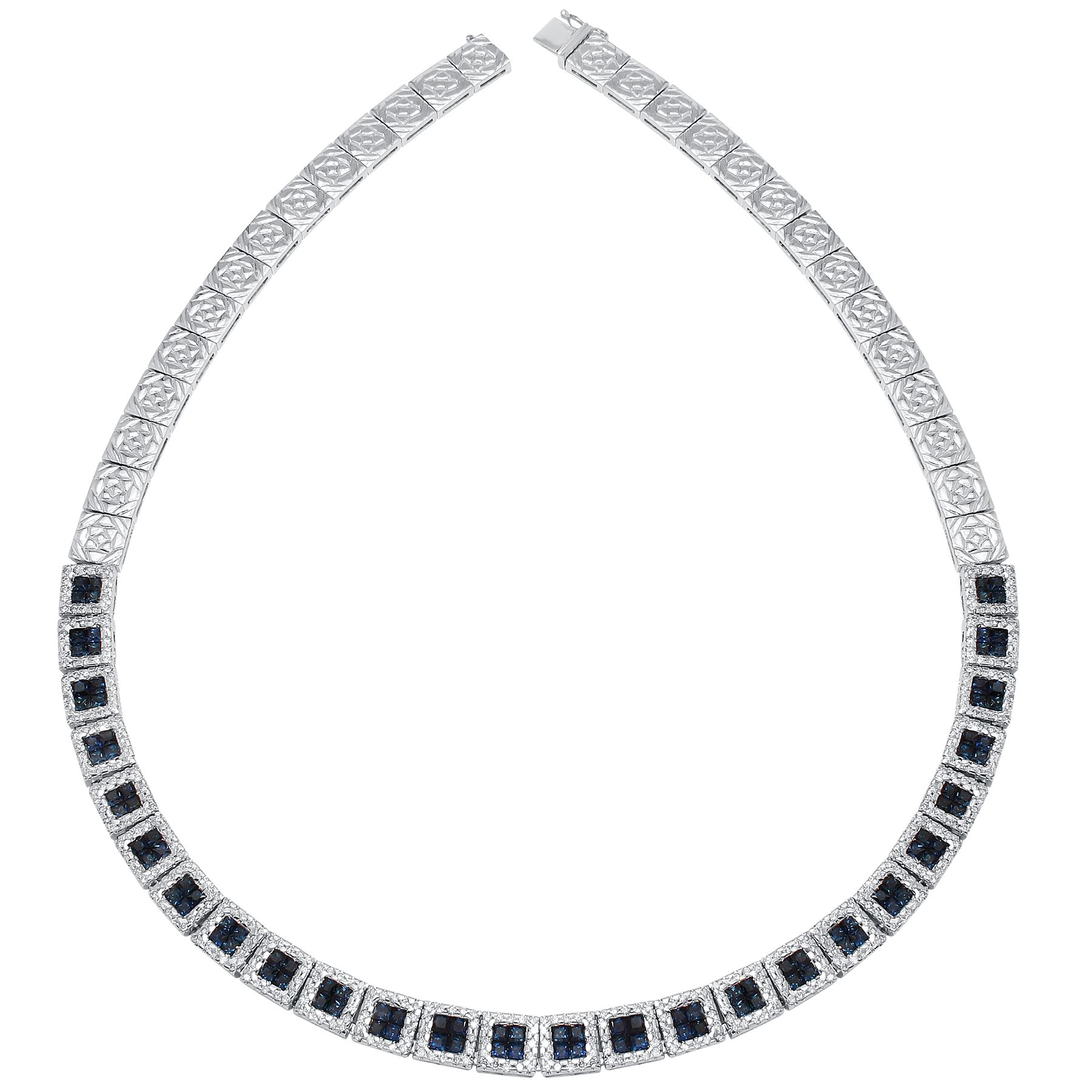 REF-637Y2N ---- Natural 13.08 CTW Sapphire & Diamond Necklace 14K White Gold