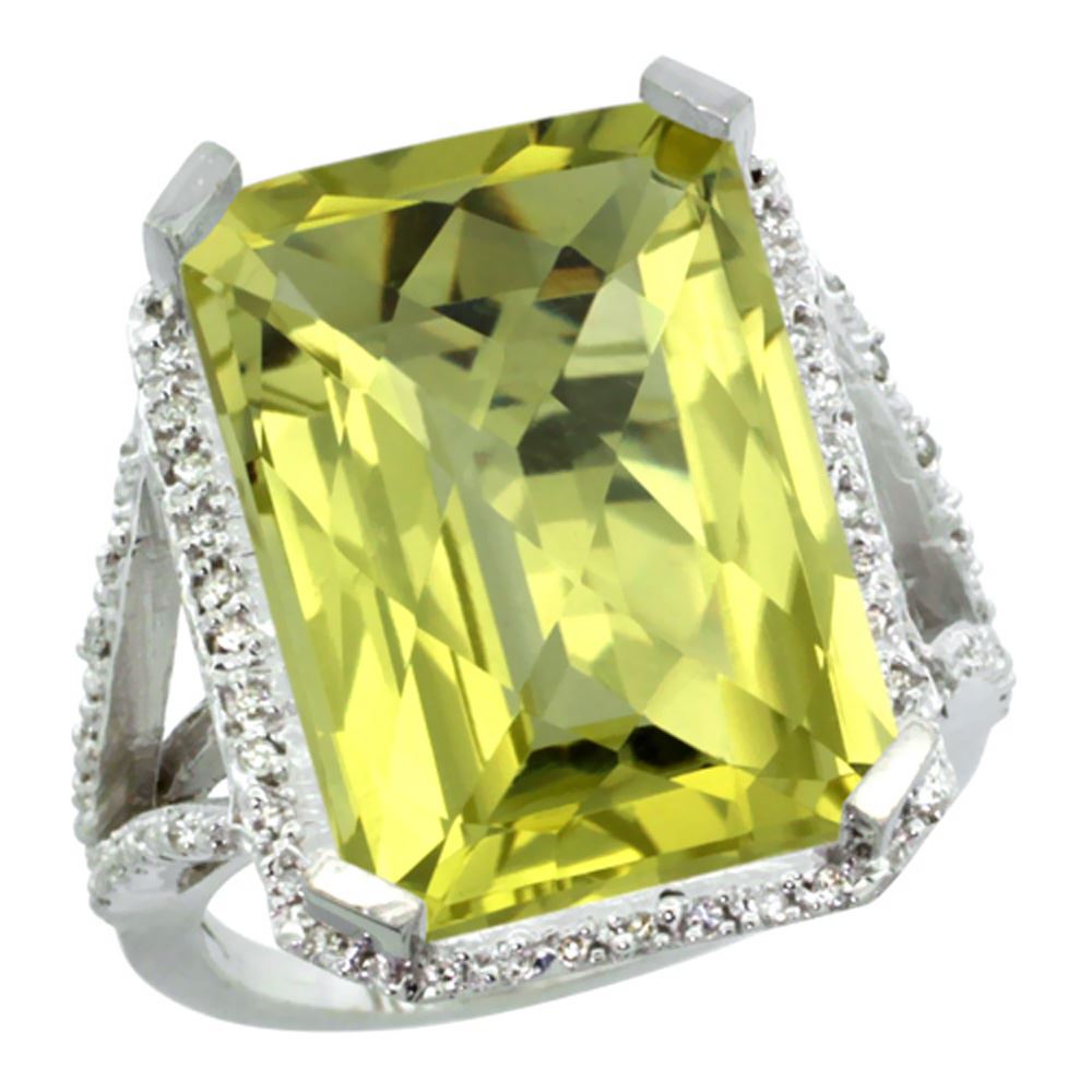 REF-73X9A ---- Manufacturer's Suggested Retail Price - $2300.00 ---- Natural 13.72 ctw Lemon-quartz & Diamond Engagement Ring 14K White Gold
