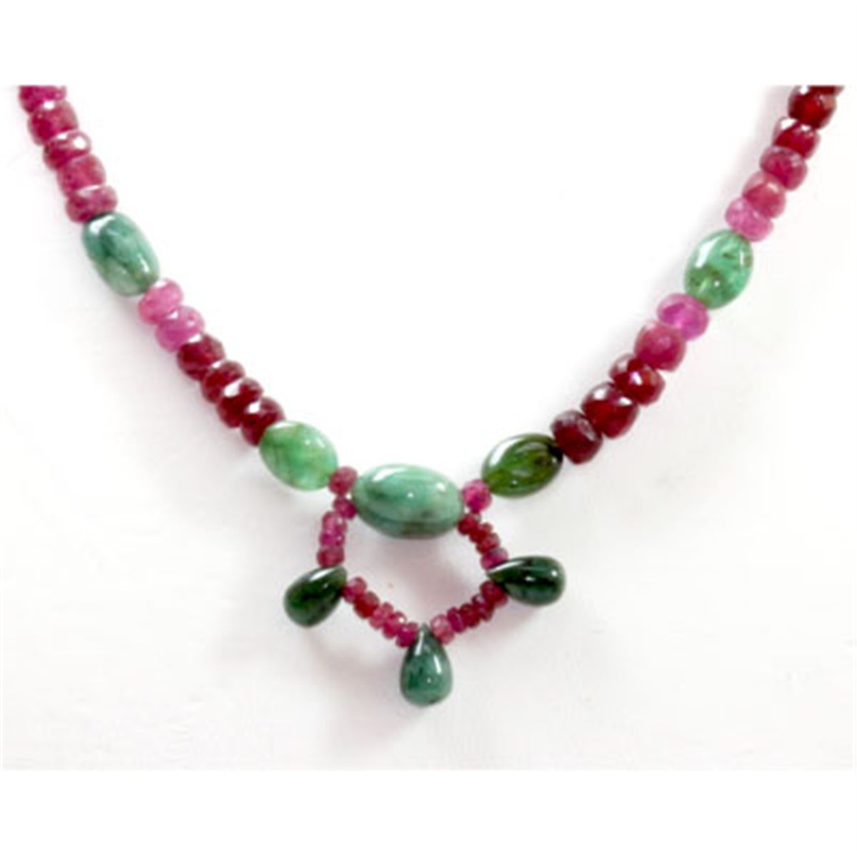 Natural 135.18 ctw Emerald & Ruby Bead Necklace ; MSRP: $1220