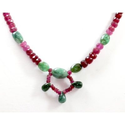 Natural 135.18 ctw Emerald & Ruby Bead Necklace **|**|** Natural 135.18 ctw Emerald & Ruby Bead Necklace ; MSRP: $1220