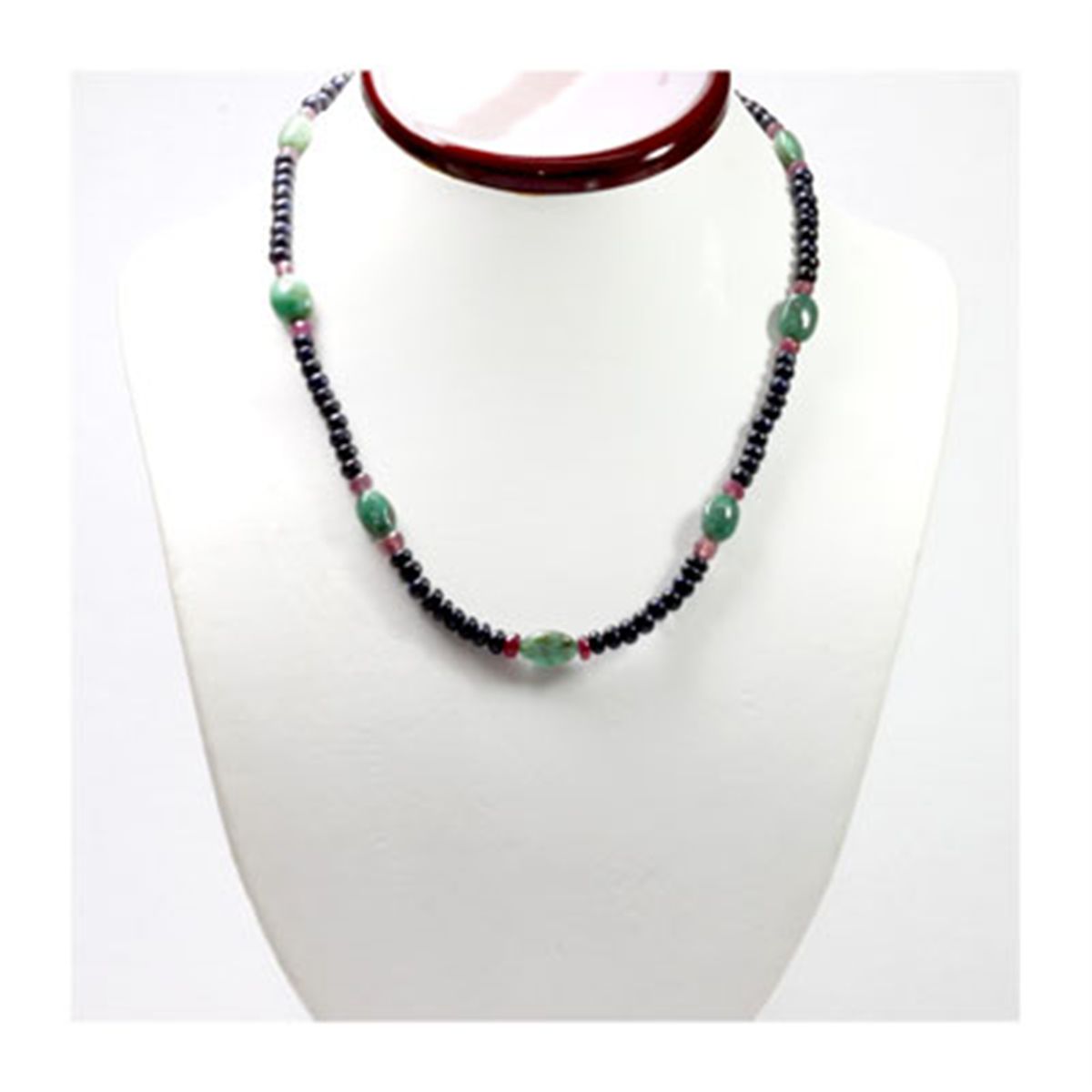 Natural 135.71 ctw Emerald, Sapphire & Ruby Bead Necklace ; MSRP: $1224