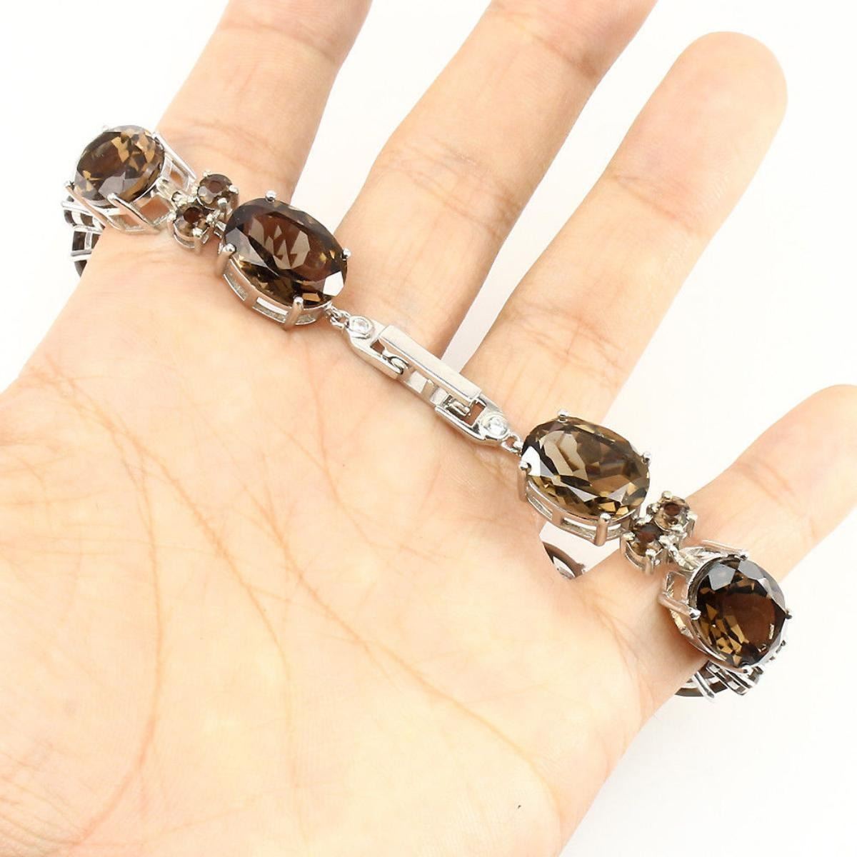 925 STERLING SILVER;PLATE..14K WHITE GOLD;LENGTH (INCHES)8MAIN STONESMOKY QUARTZOTHER GEMSTOTAL WEIGHT139.60 CT (TOTAL WEIGHT OF SILVER + STONE)DIMENSION* STONE 3.0 TO 14.0 X 10.0 MM. * FACE BRACELET 175.0 X 15.0 MM.MAIN STONE SHAPEOVAL CUTMAIN STONE COLORTOP SMOKYCLARITY/GRADEIF TO VVSLUSTERMESMERIZINGTREATMENTUNHEATEDORIGINBRAZILHARDNESS7.0