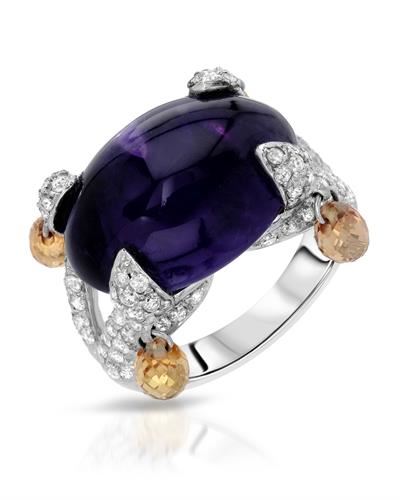 REF-219M6F ---- Natural 15.15 CTW Amethyst & Diamond Ring 18K White Gold