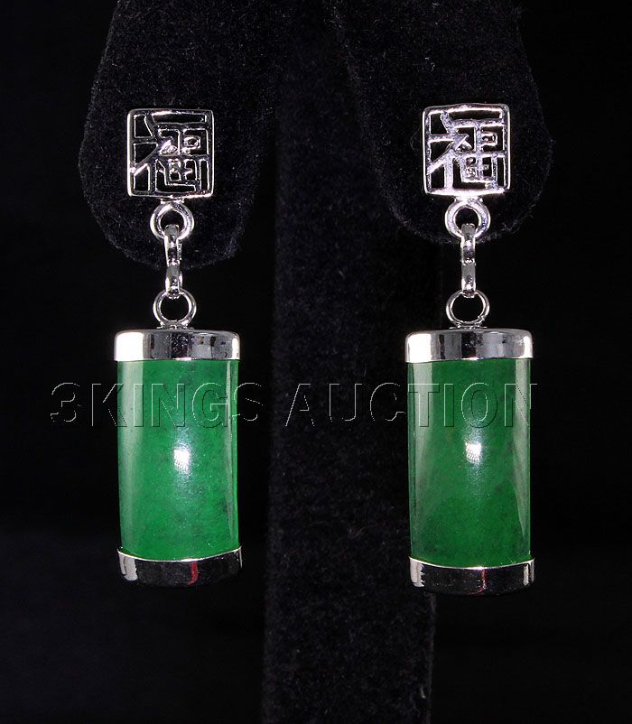 Natural 17.06ctw Green Jade Dangling Earring **|**|** Pretty 18KGP (Gold Plated) Silver Chinese Green Jade Dangling Earring size: 20x9mm; length: 1.3 inches; color: Green; stone: Jade ; MSRP: $300