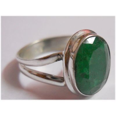 Natural 17.45 ctw Emerald Oval Ring .925 Sterling **|**|** ; MSRP: $100