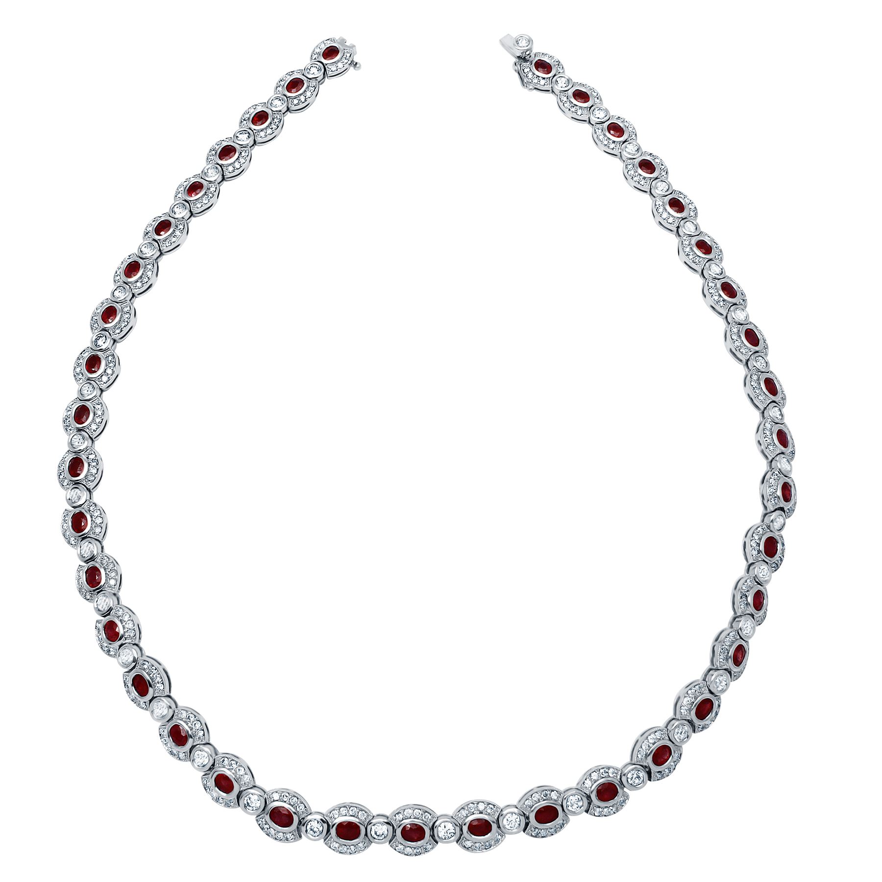 REF-951M3F ---- Natural 17.76 CTW Ruby & Diamond Necklace 14K White Gold
