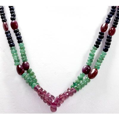 Natural 175.50 ctw Emerald, Ruby Sapphire Necklace **|**|** Jeweler Stone/s: Emerald,Ruby,Sapphire ; Total CTW: 175.5 ; MSRP: $1558