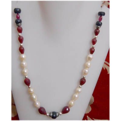 Natural 190.55 ctw Ruby/Sapphire Pearl Necklace. 925 St **|**|** ; MSRP: $1000
