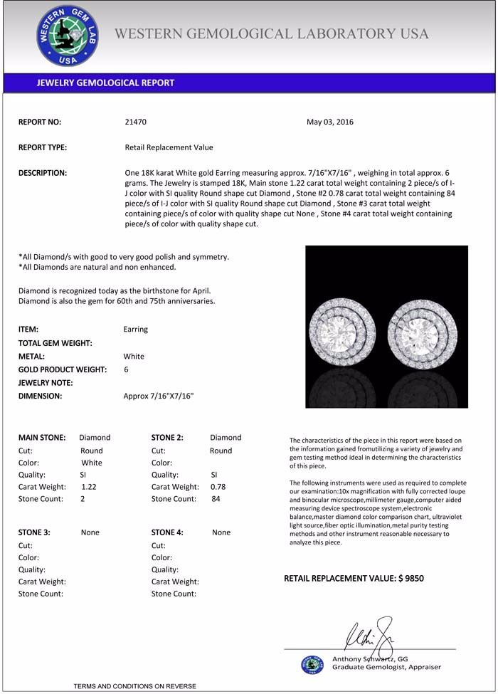 total approx. 6 grams. The Jewelry is stamped 18K, Main stone 1.22 carat total weight containing 2 piece/s of I-J color with