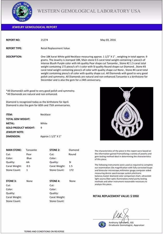DESCRIPTION OF ARTICLE: One 18K karat White gold Necklace measuring approx. 1 1/2" X 1" , weighing in