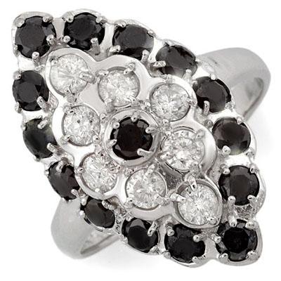 Diamond: 23 Round cut @ 2.0 ctw---- Clarity: SI-I/ Opaque---- Color: H-K/ Black----Metal Purity & Color : 10K Gold-White----Gold weight: 3.85 grams----Ring size (US): 6.25----Dimension: Approx. 7/8 x 1/2----Consignor: World Jewelry Outlet----Delivery: Within 10 business days
