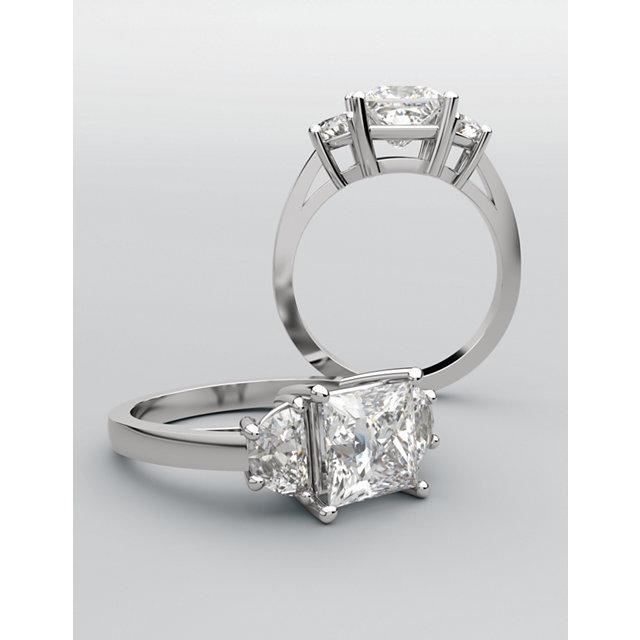 Natural 2.02 CTW 3-Stone Princess Cut & Half Moon Diamond Ring 14KT White Gold