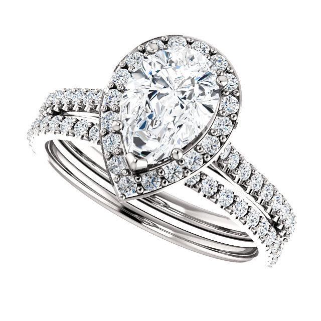 Natural 2.02 CTW Halo Teardrop Pear Cut Diamond Engagement Set 18KT White Gold