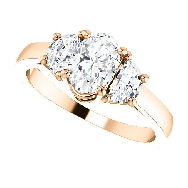 Natural 2.02 CTW Oval Cut & Half Moons 3-Stone Diamond Ring 18KT Rose Gold