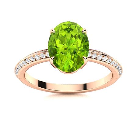 Natural 2.02 CTW Peridot & Diamond Engagement Ring 18K Rose Gold