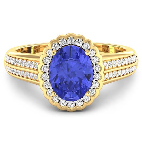 REF-75R9F - Natural 2.02 CTW Tanzanite & Diamond Ring 14K Yellow Gold - REF-75R9F