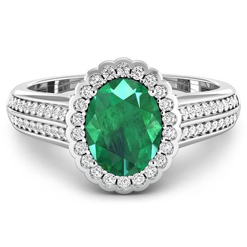 Zambian Emerald Oval/9x7mm - 1/1.65 ctw Natural Heat Treated E + White Diamond Round/1.20mm - 30/0.24 ctw Prong Setting Natural Not Treated N
