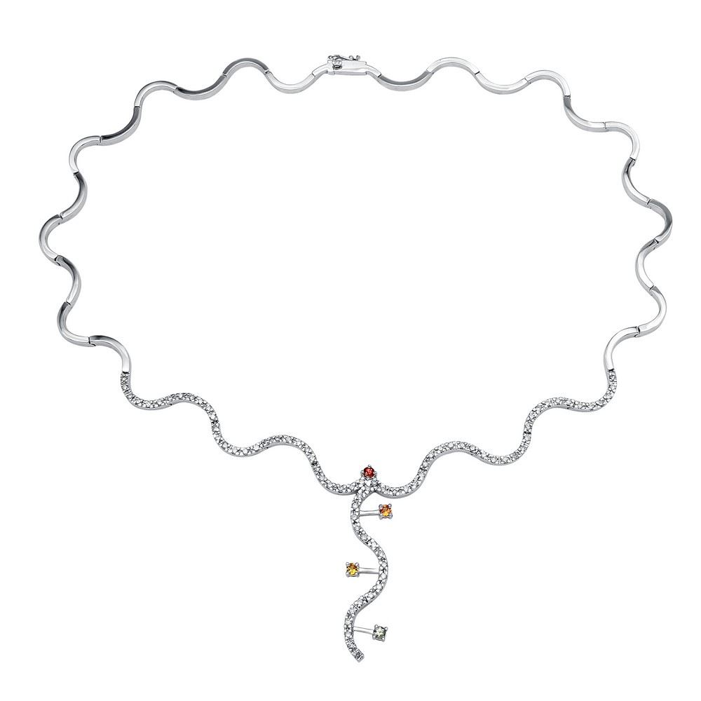 REF-268M2F ---- Natural 2.08 CTW Multi-Sapphire & Diamond Necklace 14K White Gold