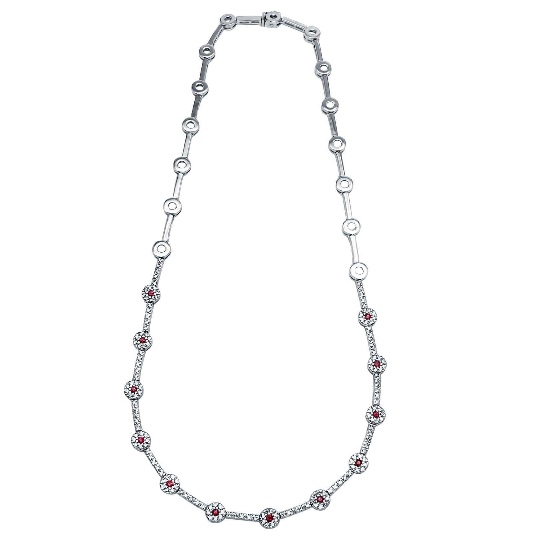REF-271X8T ---- Natural 2.09 CTW Ruby & Diamond Necklace 14K White Gold