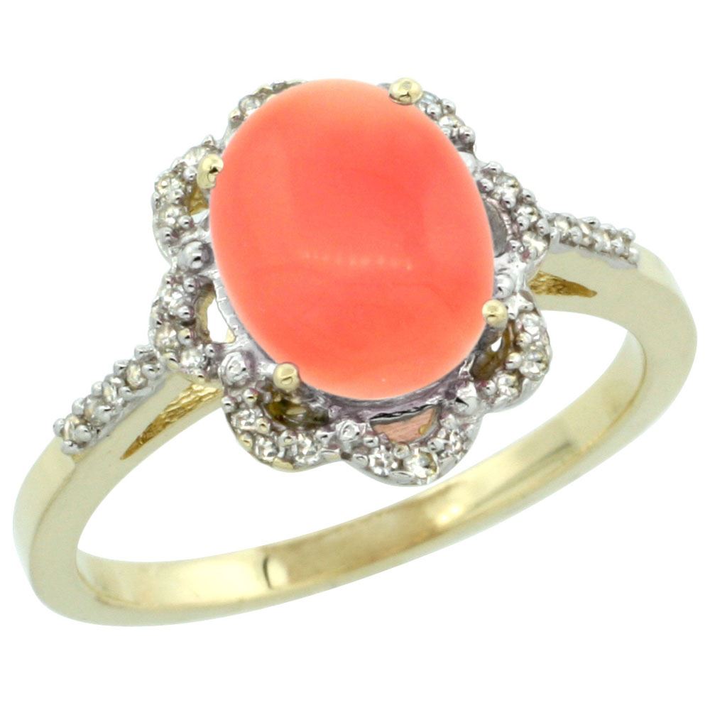 REF-37K3R ---- SKU:SC-CY445105 ---- Manufacturer's Suggested Retail Price - $1200.00 ---- Natural 2.09 ctw Coral & Diamond Engagement Ring 14K Yellow Gold