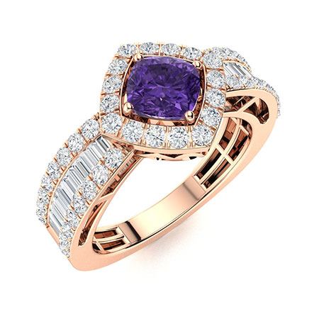 Natural 2.12 CTW Amethyst & Diamond Engagement Ring 18K Rose Gold