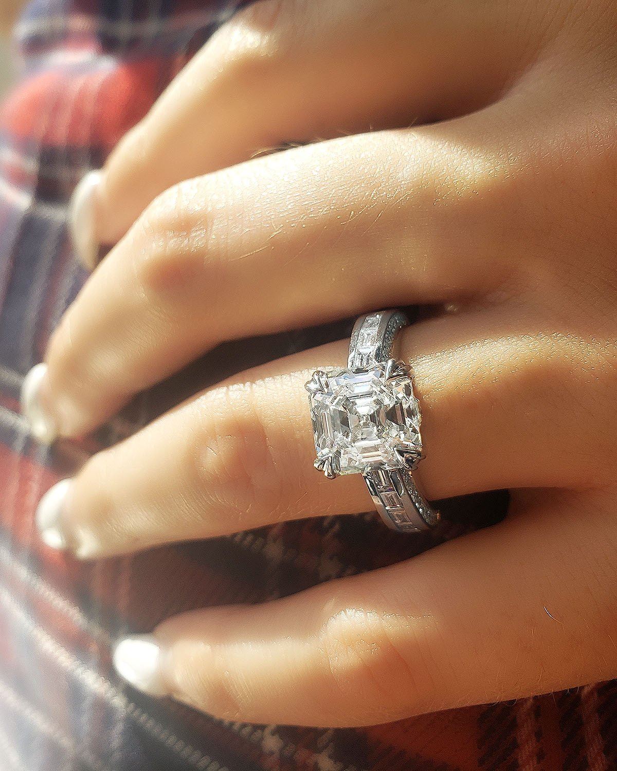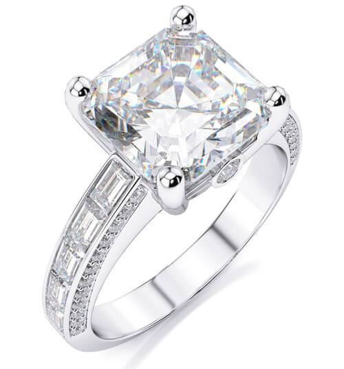 Natural 2.12 CTW Asscher Cut Diamond Ring 18KT White Gold