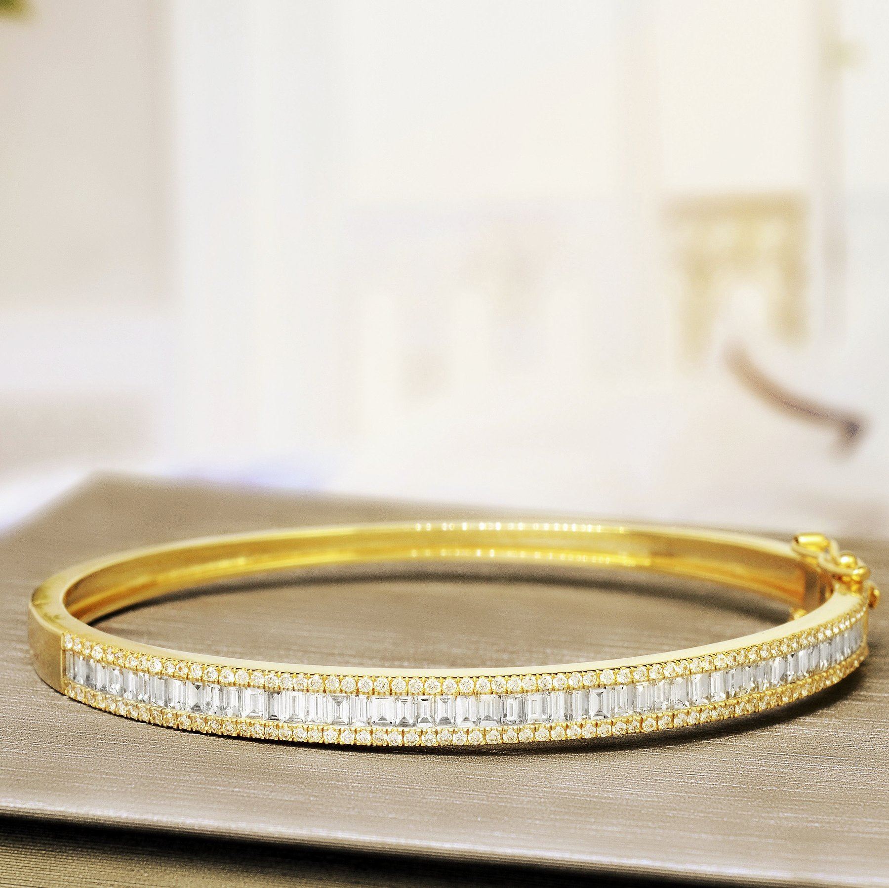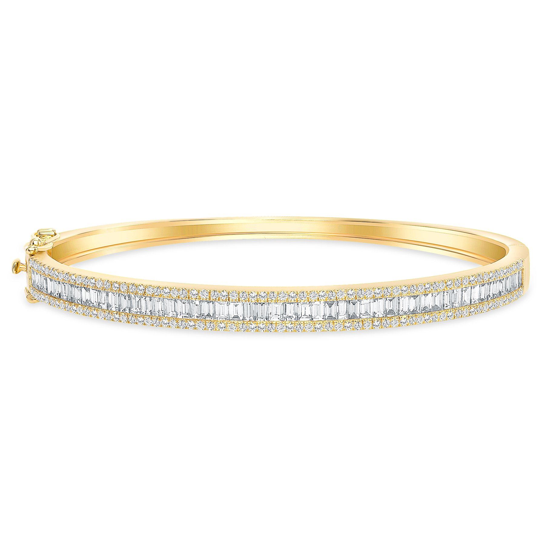 Natural 2.12 CTW Baguette & Round Diamond Bangle 14KT Yellow Gold