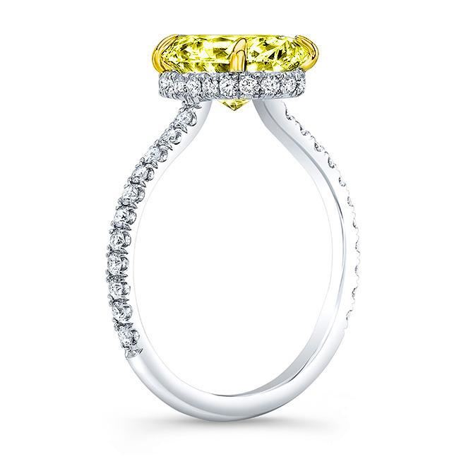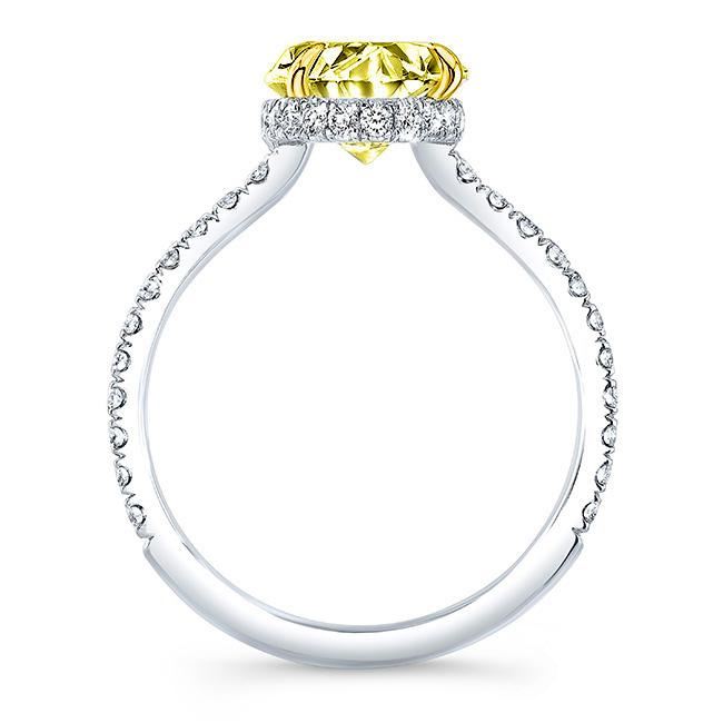 Natural 2.12 CTW Halo Canary Light yellow Oval Cut Diamond Ring 14KT Two-tone