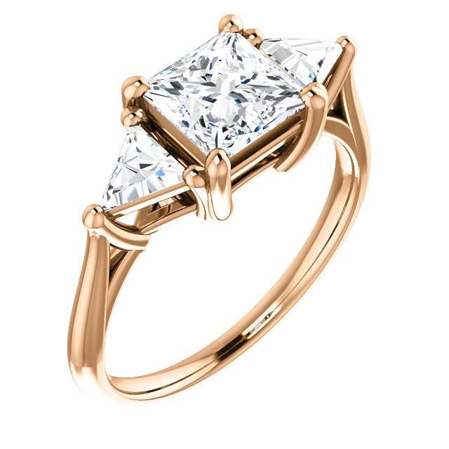 Natural 2.12 CTW Princess & Trillion Cut 3-Stone Diamond Ring 18KT Rose Gold