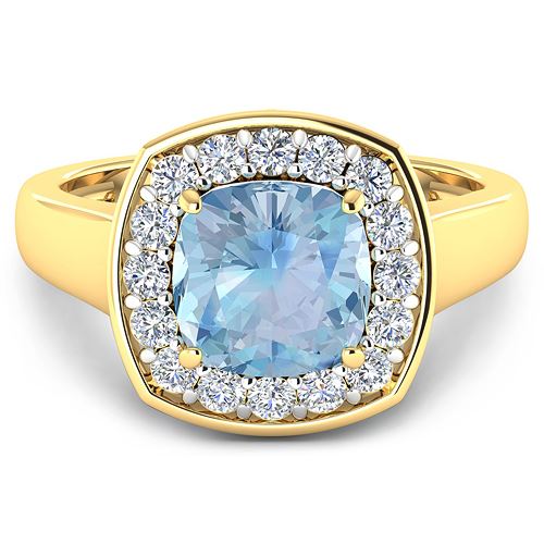 REF-79N7R - Natural 2.18 CTW Aquamarine & Diamond Ring 14K Yellow Gold - REF-79N7R