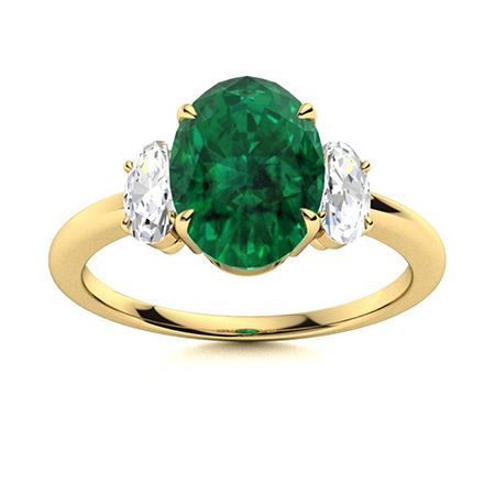 Natural 2.18 CTW Emerald & Diamond Engagement Ring 14K Yellow Gold