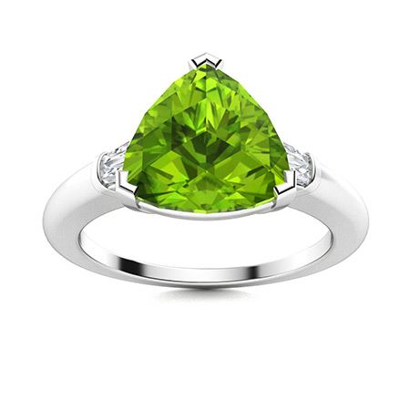 Natural 2.18 CTW Peridot & Diamond Engagement Ring 18K White Gold