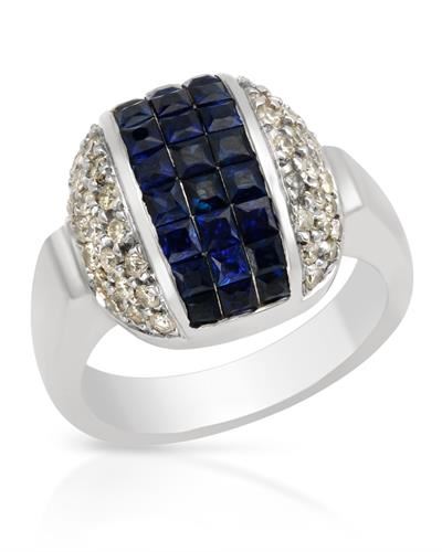 REF-267K3R ---- Natural 2.18 CTW Sapphire & Diamond Ring 18K White Gold