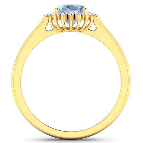 REF-45R6F - Natural 2.2 CTW Aquamarine & Diamond Ring 14K Yellow Gold - REF-45R6F