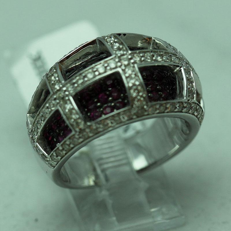 Item details: DIAMOND: 95 Round cut White Diamond @ 0.97ct ---GEMSTONE: 71 Ruby @ 1.25ct---METAL: 14K White Gold---Metal weight 10.3 grams---SKU: 159324C --- Consignor: RC Fine Jewelers --- Availability: Ready to Ship