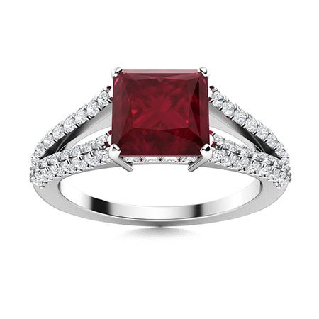 Natural 2.23 CTW Ruby & Diamond Engagement Ring 14K White Gold
