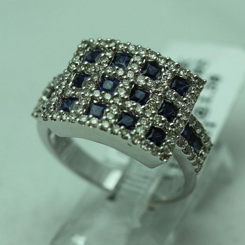 Item details: DIAMOND: 106 Round cut White Diamond @ 0.85ct ---GEMSTONE: 16 Blue Sapphire @ 1.38ct---METAL: 14K White Gold---Metal weight 6.11 grams---SKU: 286754C --- Consignor: RC Fine Jewelers --- Availability: Ready to Ship