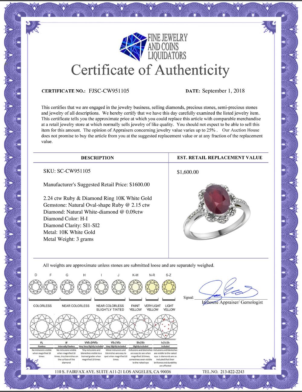 All Gia and EGL Diamonds are subject to availability due to consignors’ terms with us.